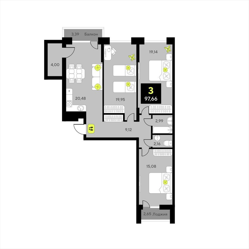 Трехкомнатная квартира 97,66 м2 по ул. за 14070000 руб. |
