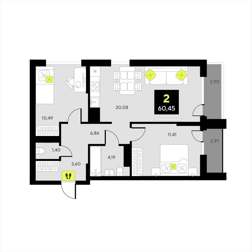 Двухкомнатная квартира 60,45 м2 по ул. за 10610000 руб. |