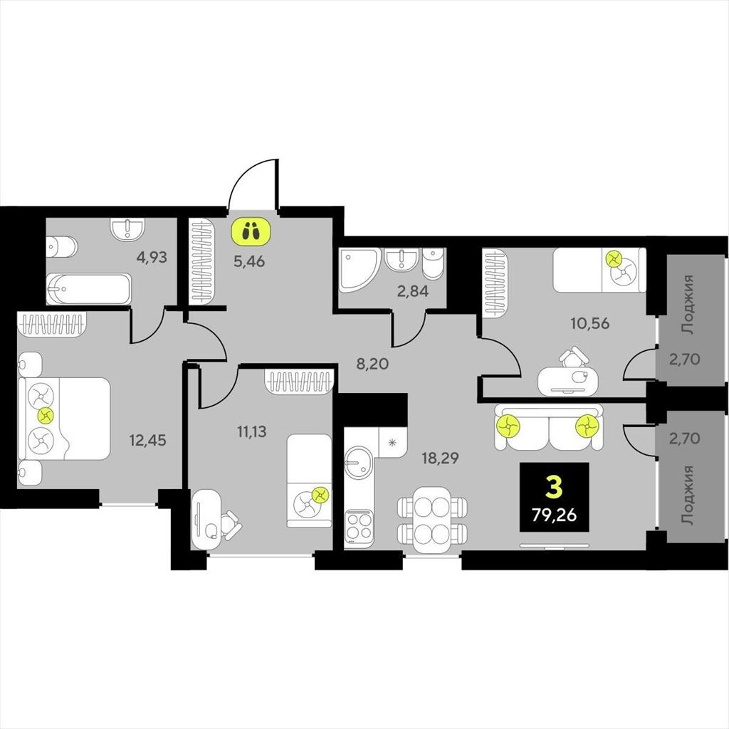 Трехкомнатная квартира 79,26 м2 по ул. ул разведчика Кузнецова 7 за 11920000 руб. |