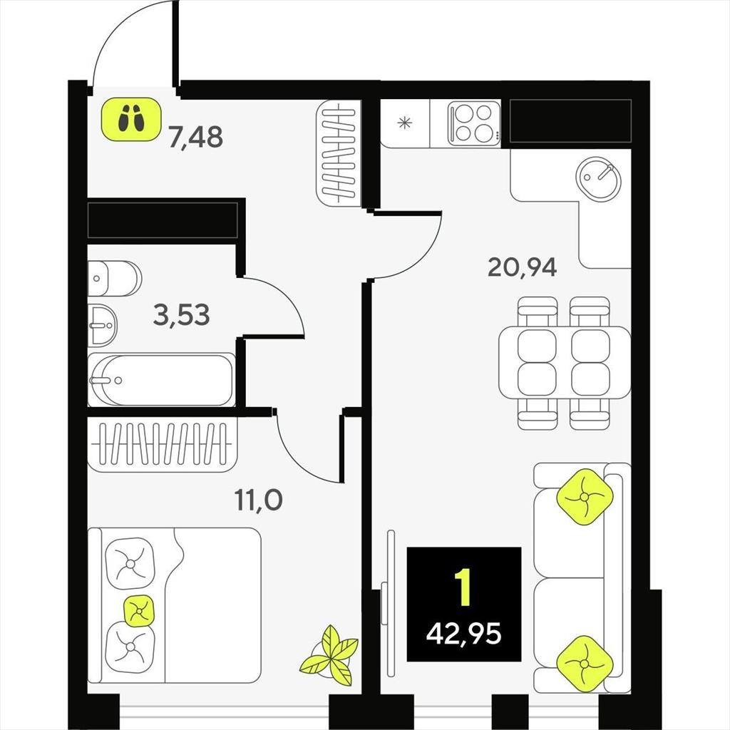 Однокомнатная квартира 42,95 м2 по ул. ул разведчика Кузнецова 7 за 7820000 руб. |