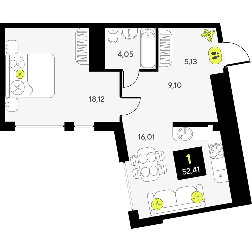 Однокомнатная квартира 52,41 м2 по ул. ул разведчика Кузнецова 7 за 8770000 руб. |