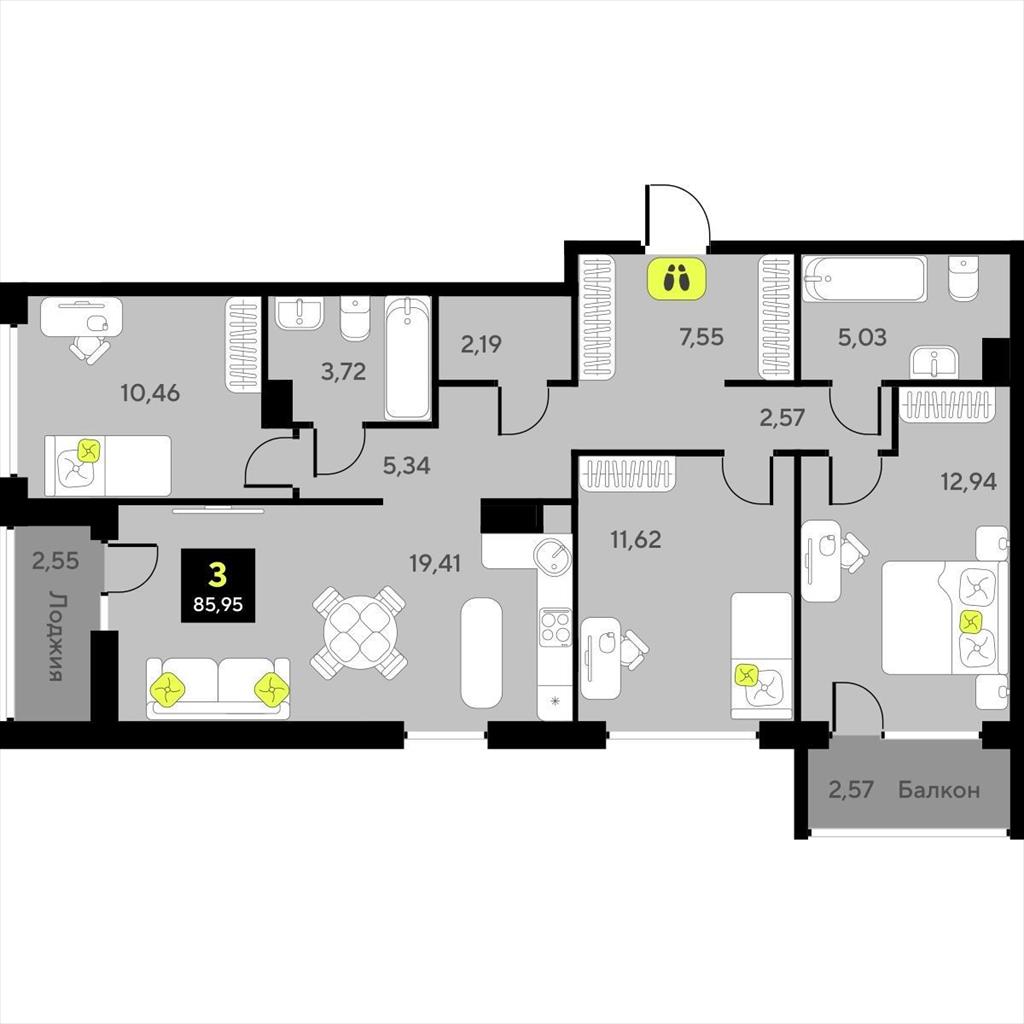 Трехкомнатная квартира 85,95 м2 по ул. за 11920000 руб. |