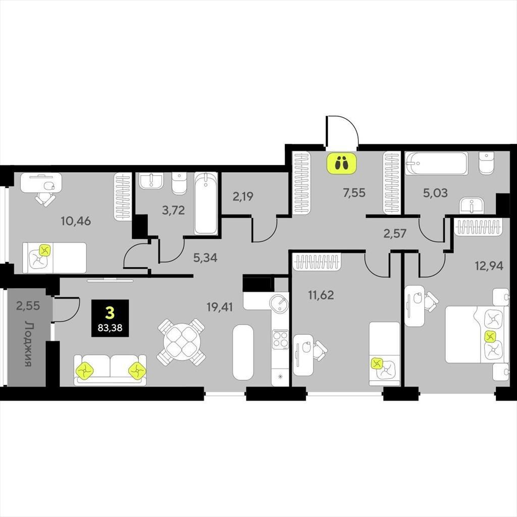 Трехкомнатная квартира 83,38 м2 по ул. за 11970000 руб. |