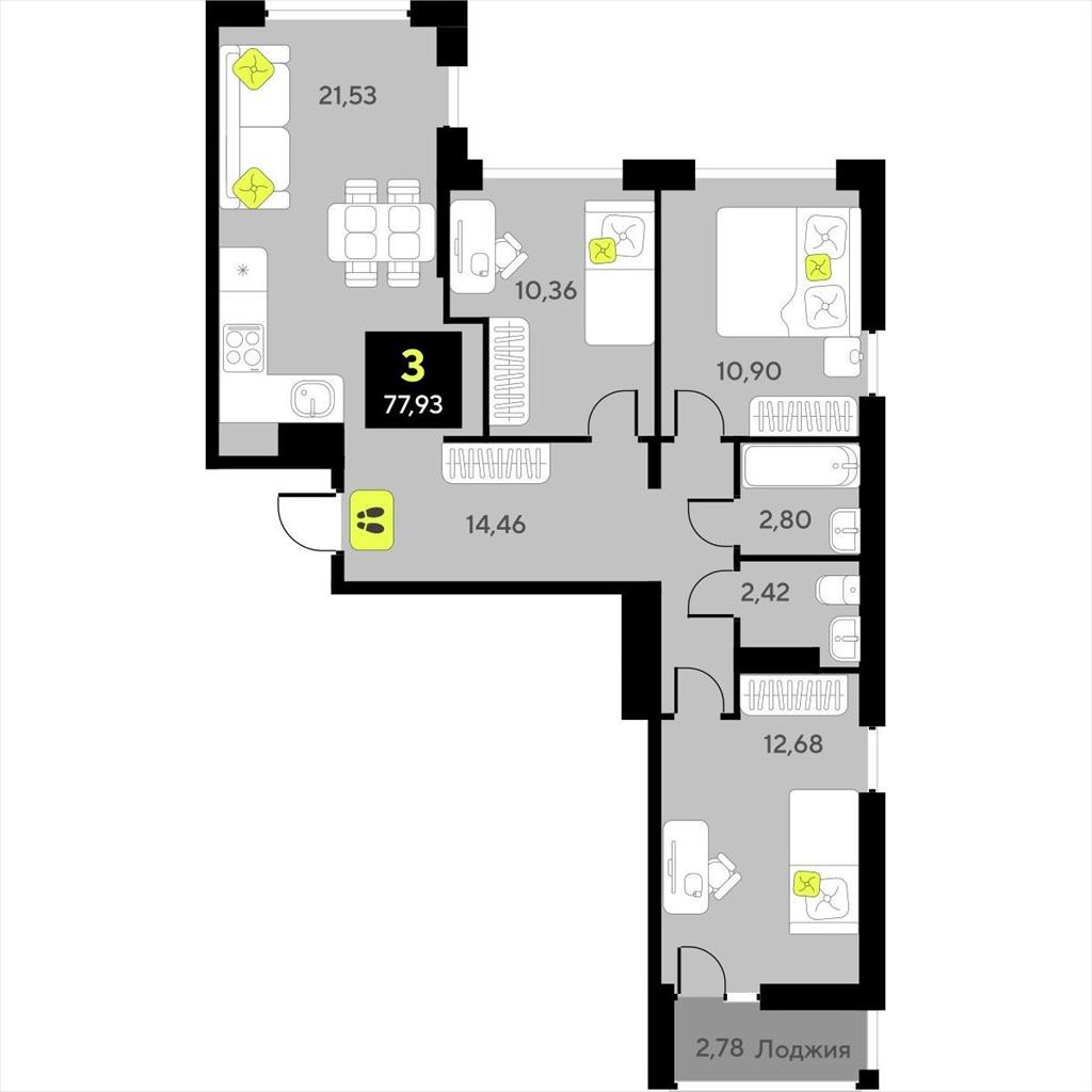 Трехкомнатная квартира 77,93 м2 по ул. за 12390000 руб. |
