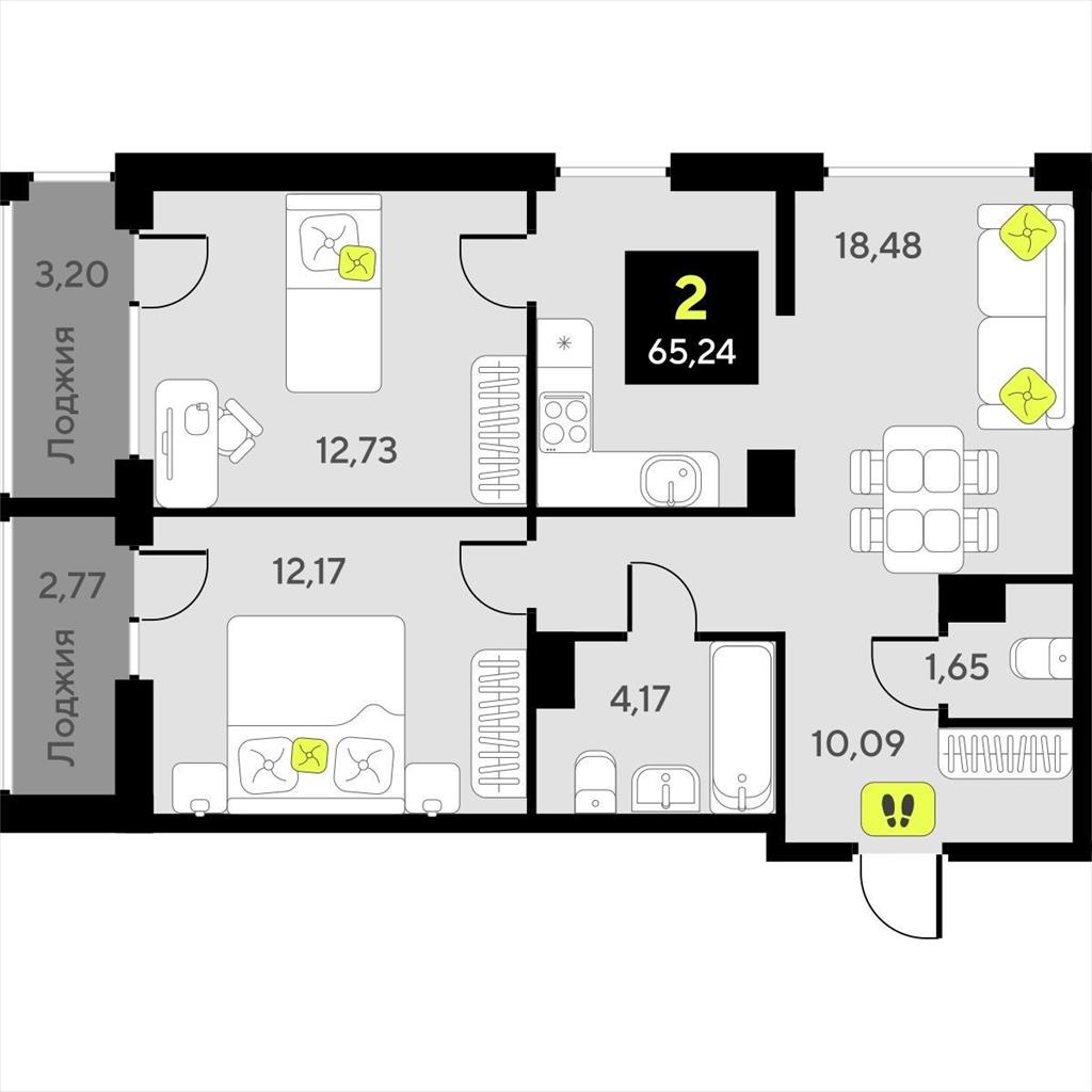 Двухкомнатная квартира 65,24 м2 по ул. за 10460000 руб. |