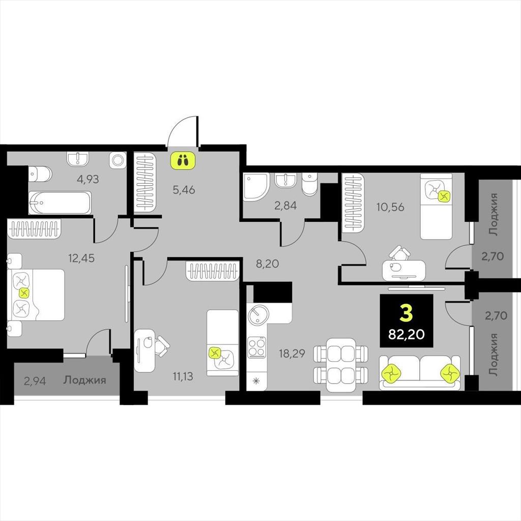 Трехкомнатная квартира 82,20 м2 по ул. за 11610000 руб. |