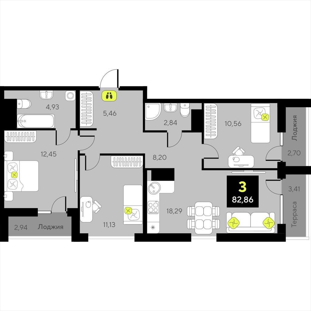 Трехкомнатная квартира 82,86 м2 по ул. за 11930000 руб. |