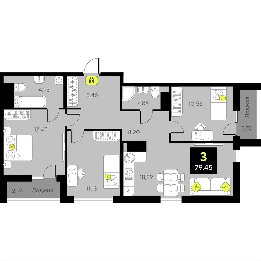 Трехкомнатная квартира 79,45 м2 по ул. за 11760000 руб. |