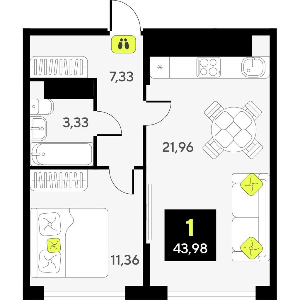 Однокомнатная квартира 43,98 м2 по ул. за 7720000 руб. |