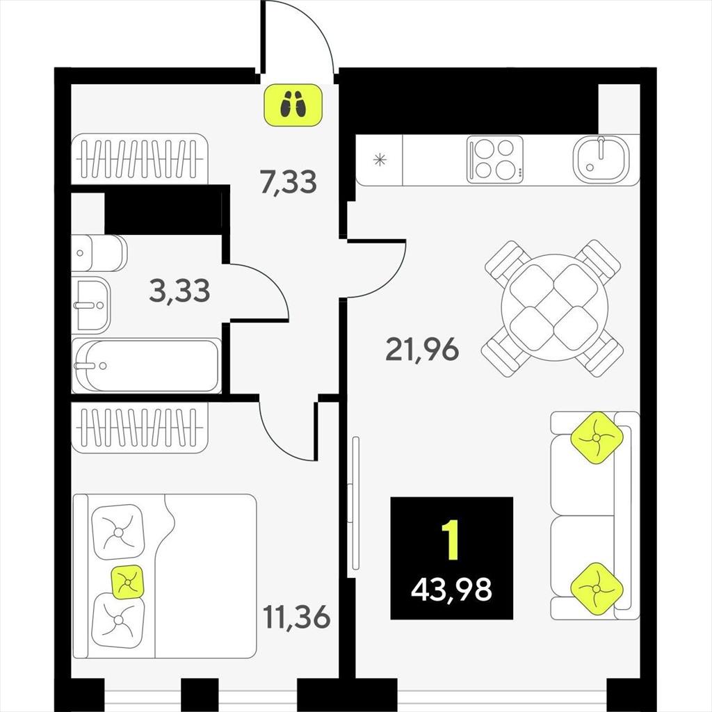 Однокомнатная квартира 43,98 м2 по ул. за 7930000 руб. |
