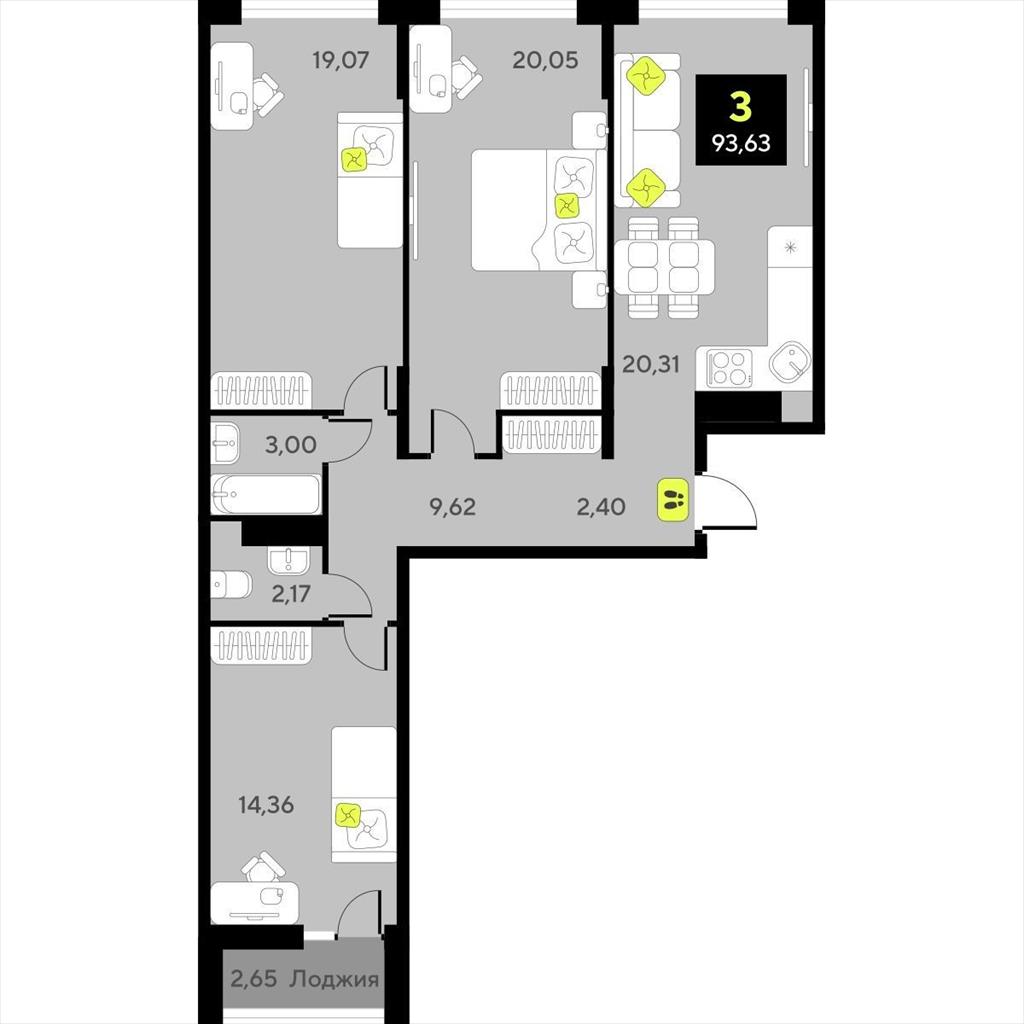 Трехкомнатная квартира 93,63 м2 по ул. за 12130000 руб. |