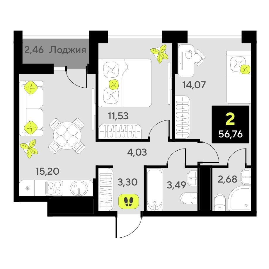 9 500 000 р. (167 371 р./м2) Подать заявку на ипотеку |