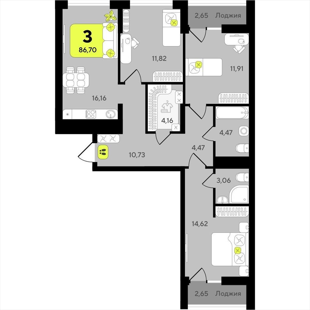 Трехкомнатная квартира 86,70 м2 по ул. ул разведчика Кузнецова 10 за 12020000 руб. |