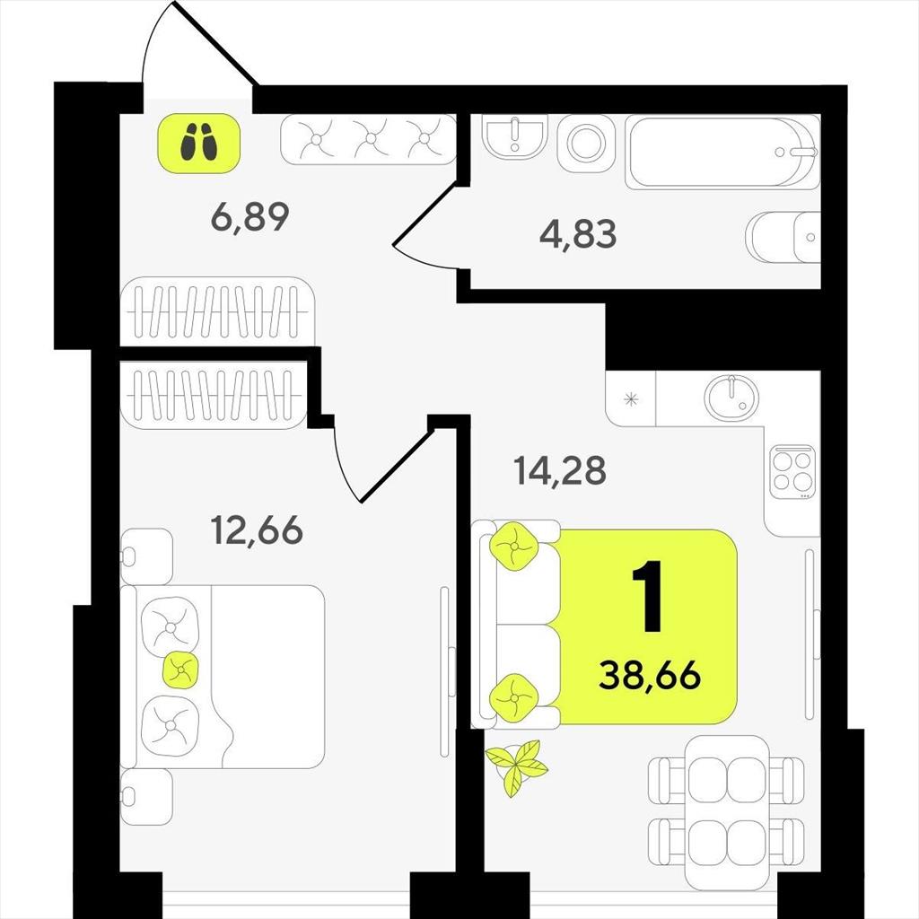 Однокомнатная квартира 38,66 м2 по ул. ул разведчика Кузнецова 10 за 7000000 руб. |