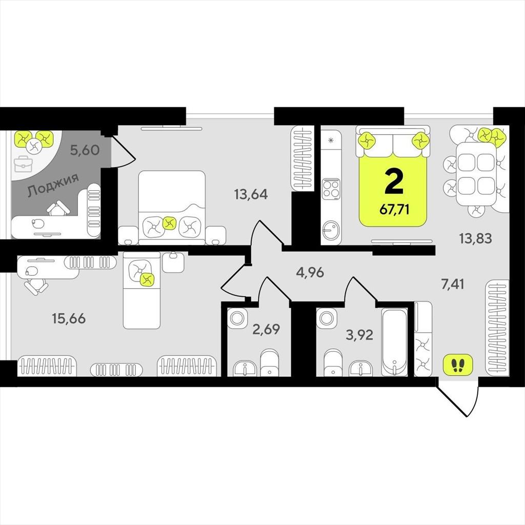 Двухкомнатная квартира 67,71 м2 по ул. ул разведчика Кузнецова 10 за 10040000 руб. |