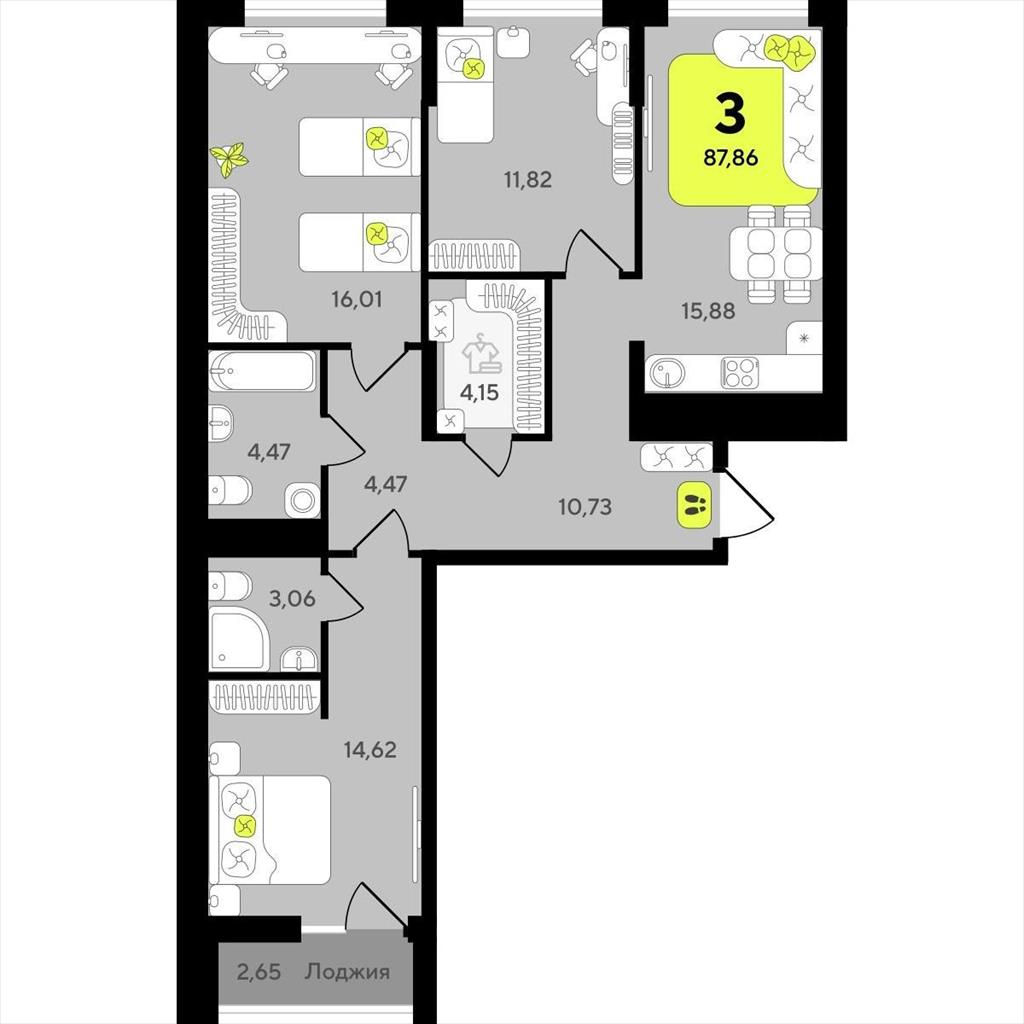 Трехкомнатная квартира 87,86 м2 по ул. ул разведчика Кузнецова 10 за 11710000 руб. |
