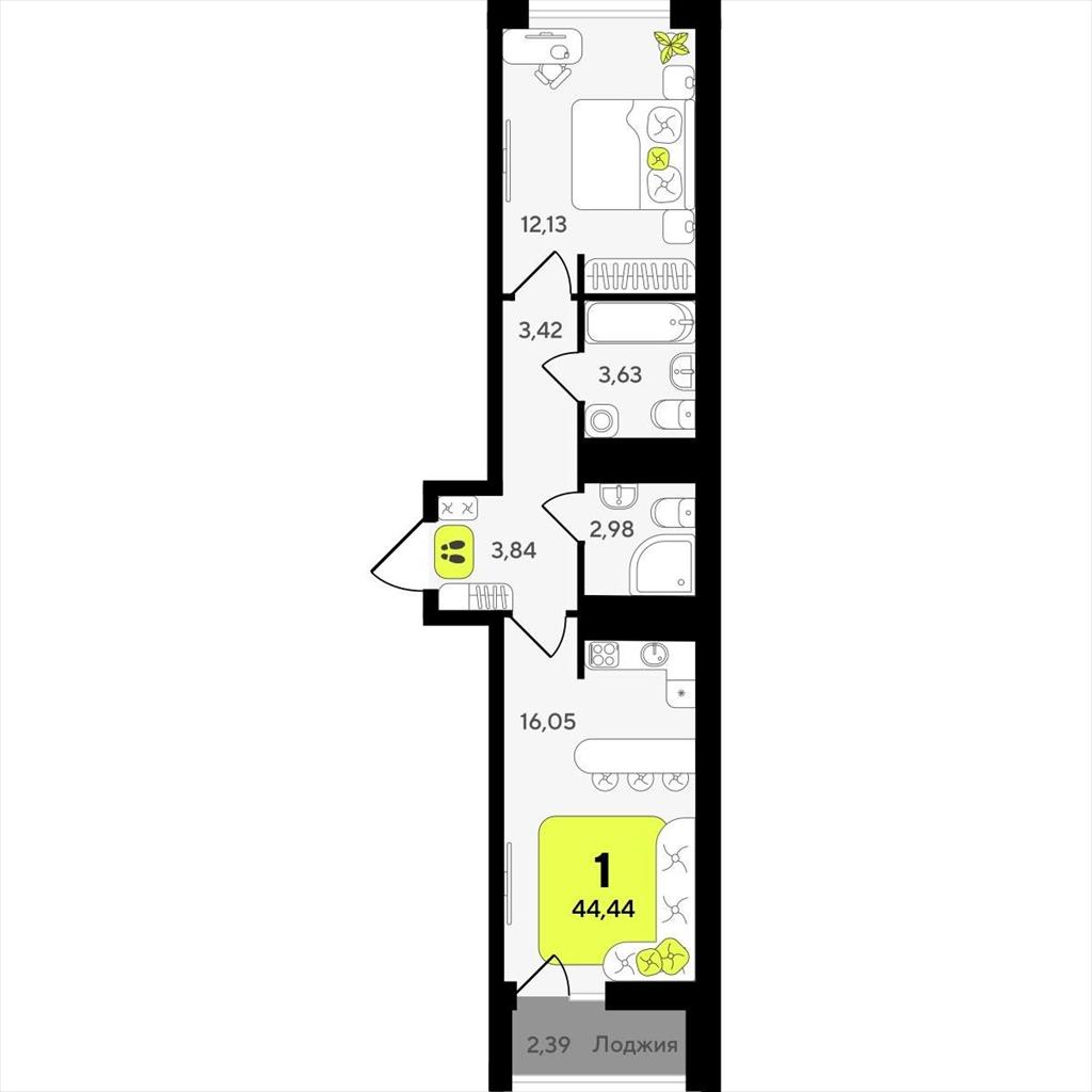 Однокомнатная квартира 44,44 м2 по ул. ул разведчика Кузнецова 10 за 7670000 руб. |