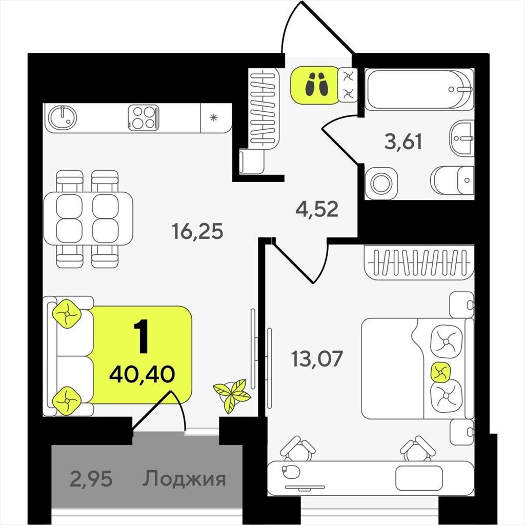 Однокомнатная квартира 40,40 м2 по ул. ул разведчика Кузнецова 10 за 7680000 руб. |