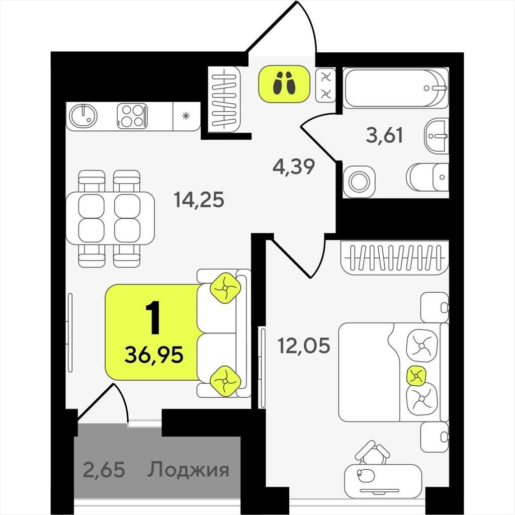 Однокомнатная квартира 36,95 м2 по ул. ул разведчика Кузнецова 10 за 7310000 руб. |