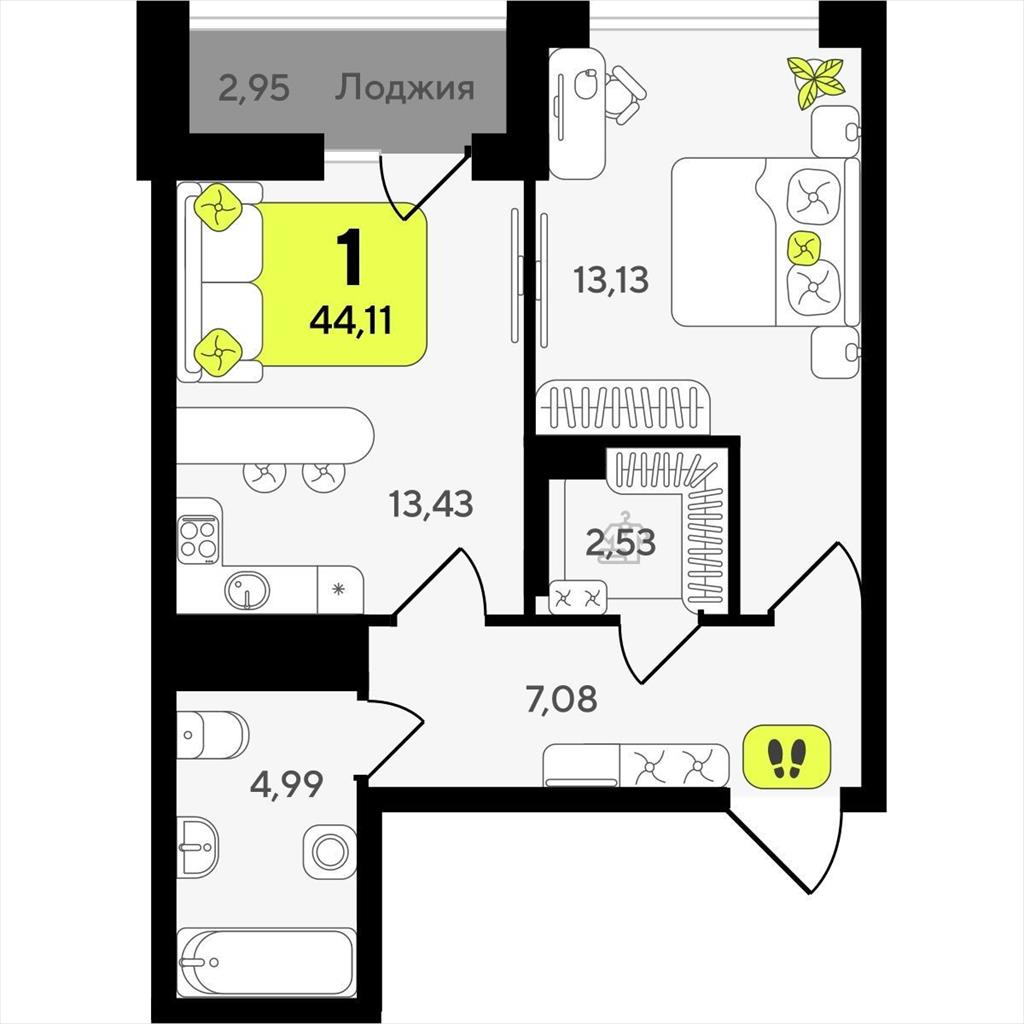 Однокомнатная квартира 44,11 м2 по ул. ул разведчика Кузнецова 10 за 7540000 руб. |