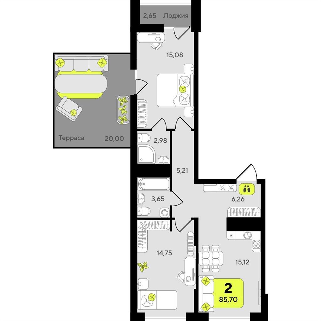 Двухкомнатная квартира 85,70 м2 по ул. ул разведчика Кузнецова 10 за 11420000 руб. |