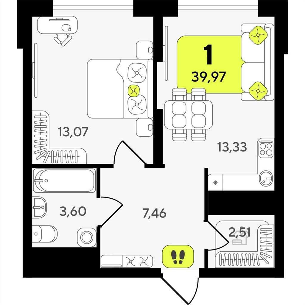 Однокомнатная квартира 39,97 м2 по ул. ул разведчика Кузнецова 10 за 7050000 руб. |