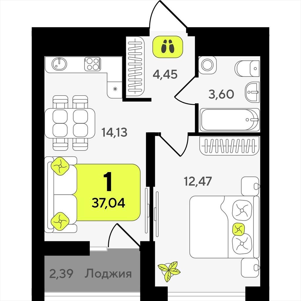 Однокомнатная квартира 37,04 м2 по ул. ул разведчика Кузнецова 10 за 7270000 руб. |