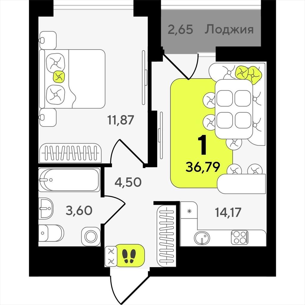 Однокомнатная квартира 36,79 м2 по ул. ул разведчика Кузнецова 10 за 7140000 руб. |