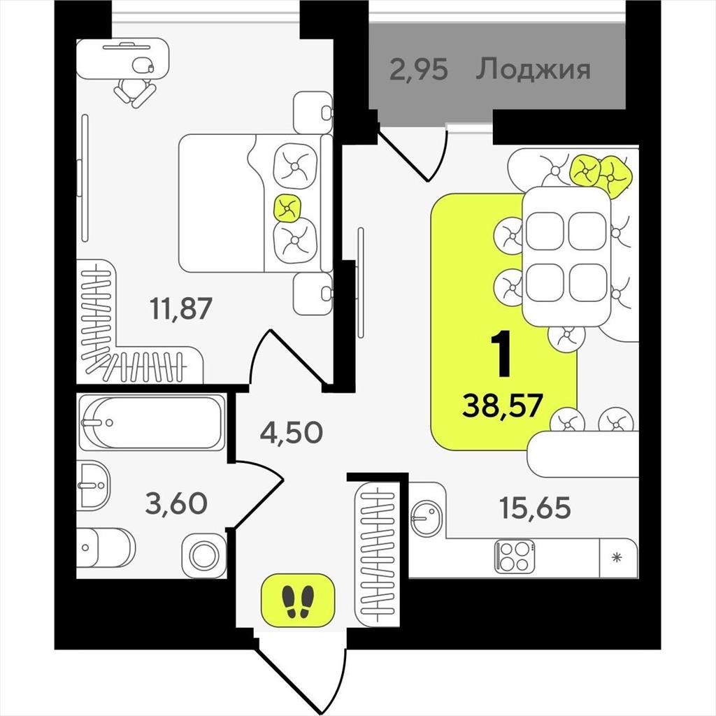 Однокомнатная квартира 38,57 м2 по ул. ул разведчика Кузнецова 10 за 7490000 руб. |