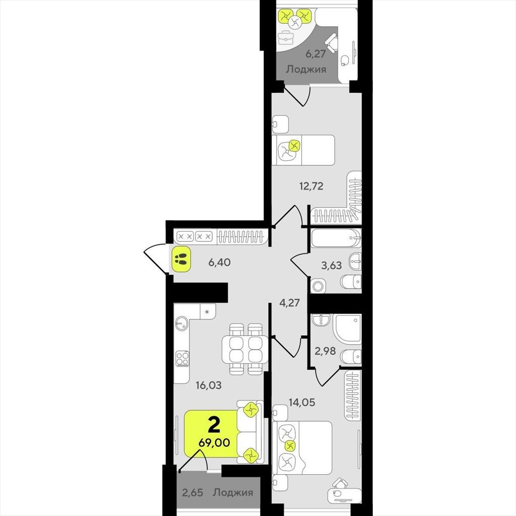Двухкомнатная квартира 69,00 м2 по ул. ул разведчика Кузнецова 10 за 10110000 руб. |