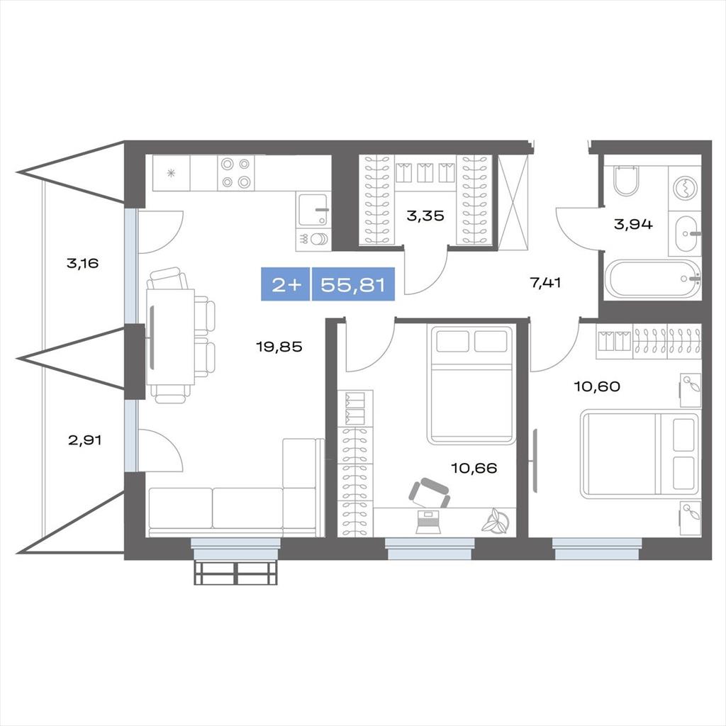 | Двухкомнатная квартира по ул. ул Таежная, 6 в Тюмени |