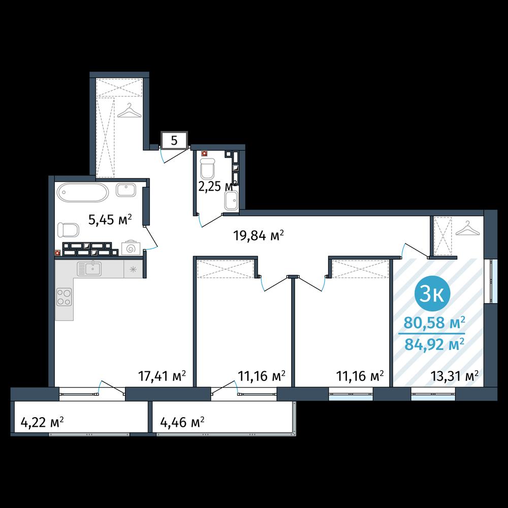 Трехкомнатная квартира 80,58 м2 по ул. за 10399000 руб. |