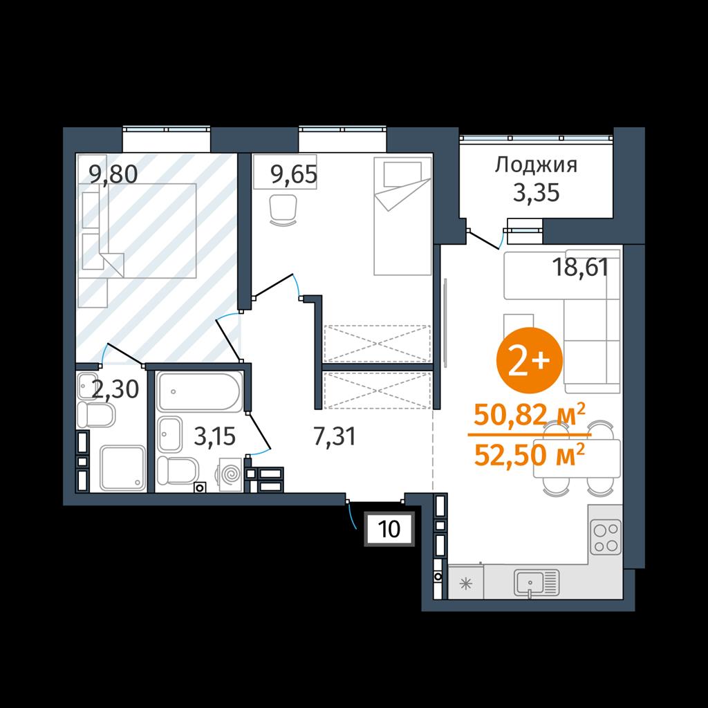 Двухкомнатная квартира 50,82 м2 по ул. 2.2.1 за 6738000 руб. |