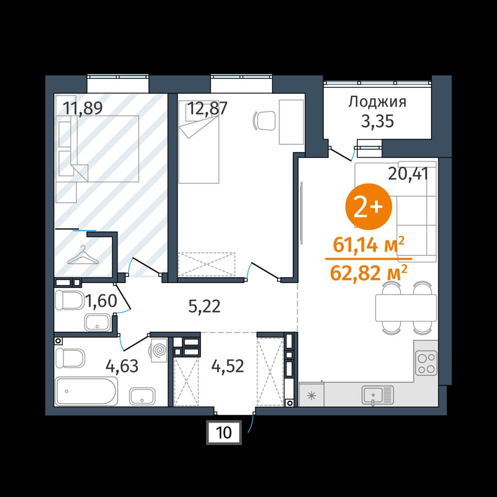 Двухкомнатная квартира 61,14 м2 по ул. 2.2.1 за 8162000 руб. |