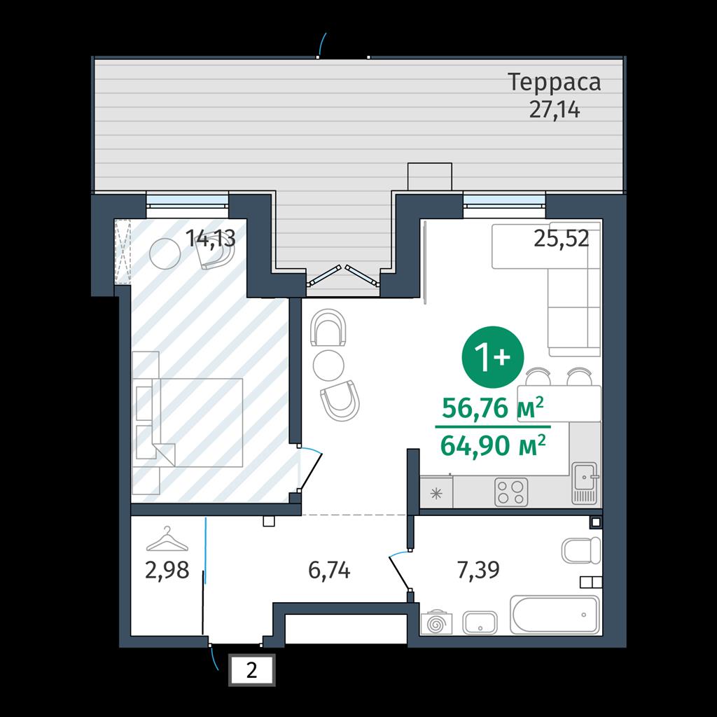 Однокомнатная квартира 56,76 м2 по ул. 2.2.2 за 8628000 руб. |