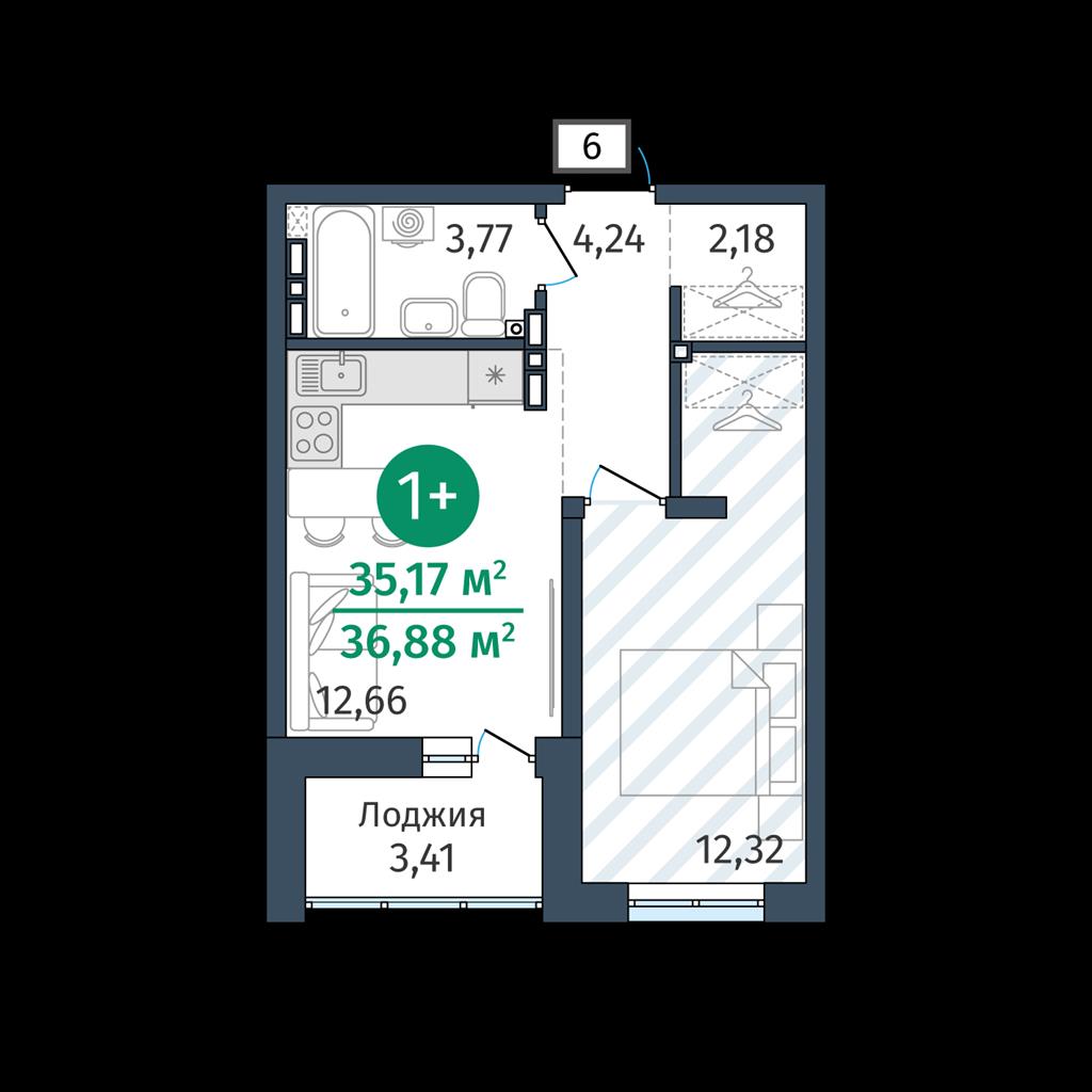 Однокомнатная квартира 35,17 м2 по ул. 2.2.2 за 5107000 руб. |