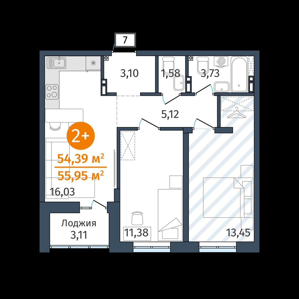 Двухкомнатная квартира 54,39 м2 по ул. 2.2.2 за 7148000 руб. |