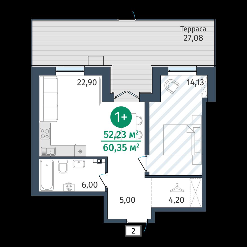 Однокомнатная квартира 52,23 м2 по ул. 2.2.2 за 7939000 руб. |