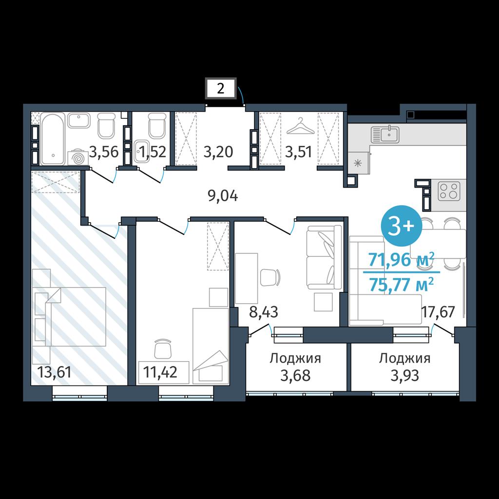 Трехкомнатная квартира 71,96 м2 по ул. 2.2.2 за 9732000 руб. |