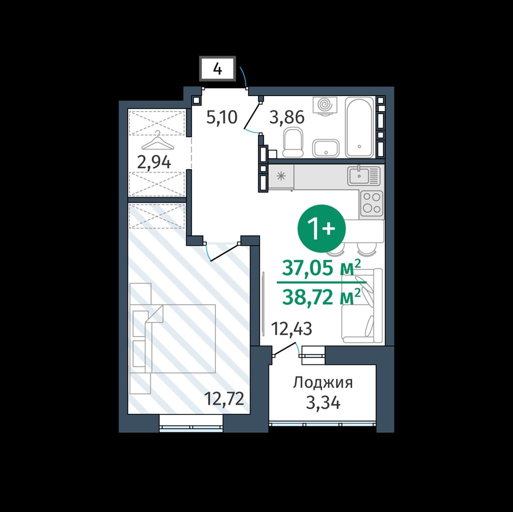 Однокомнатная квартира 37,05 м2 по ул. 2.2.2 за 5658000 руб. |
