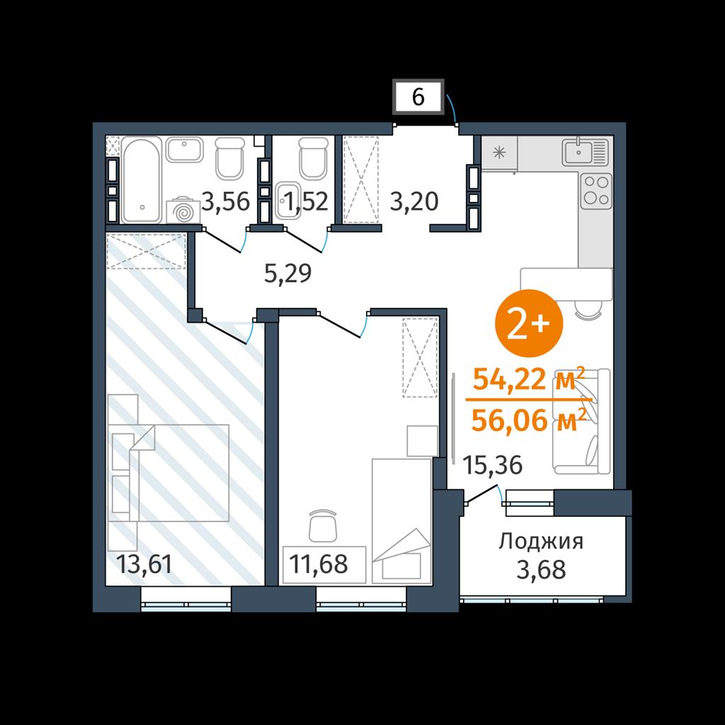 Двухкомнатная квартира 54,22 м2 по ул. 2.2.2 за 7196000 руб. |