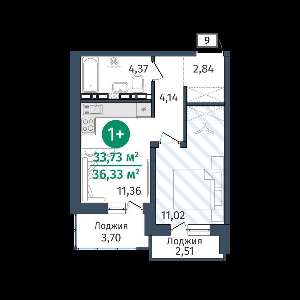 Однокомнатная квартира 33,73 м2 по ул. 2.2.2 за 5164000 руб. |