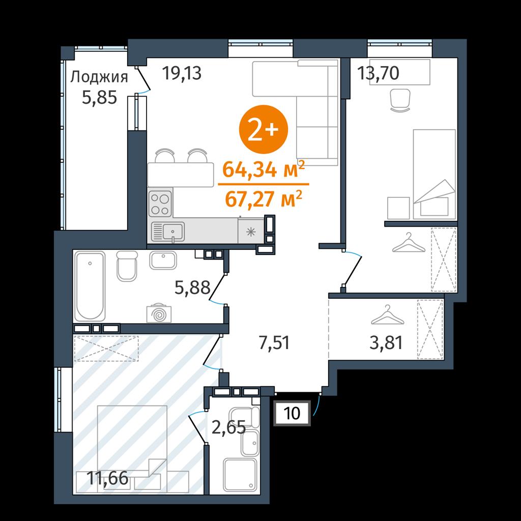 Двухкомнатная квартира 64,34 м2 по ул. 2.2.2 за 8295000 руб. |