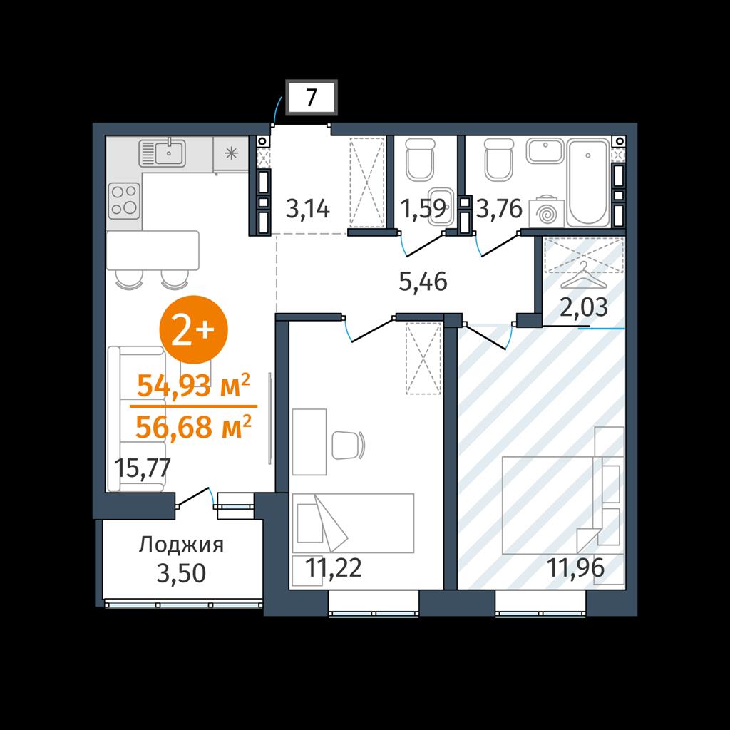 Двухкомнатная квартира 54,93 м2 по ул. Сергея Джанбровского 25 за 7072000 руб. |