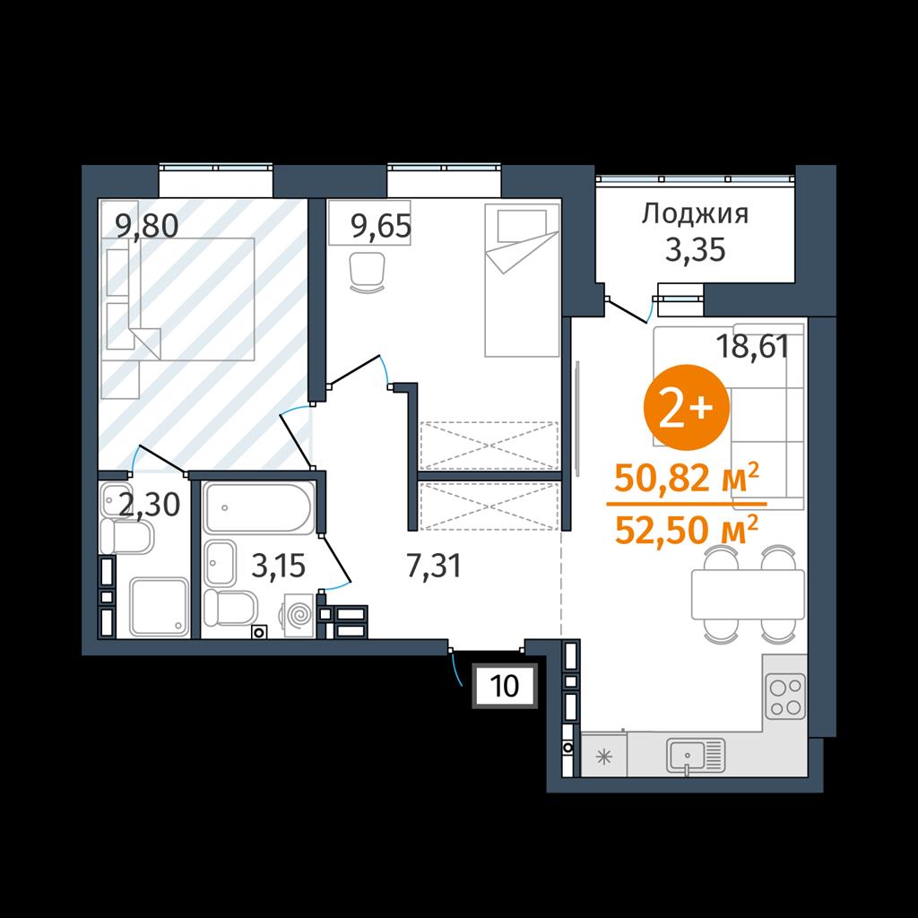 Двухкомнатная квартира 50,82 м2 по ул. Сергея Джанбровского 25 за 6743000 руб. |