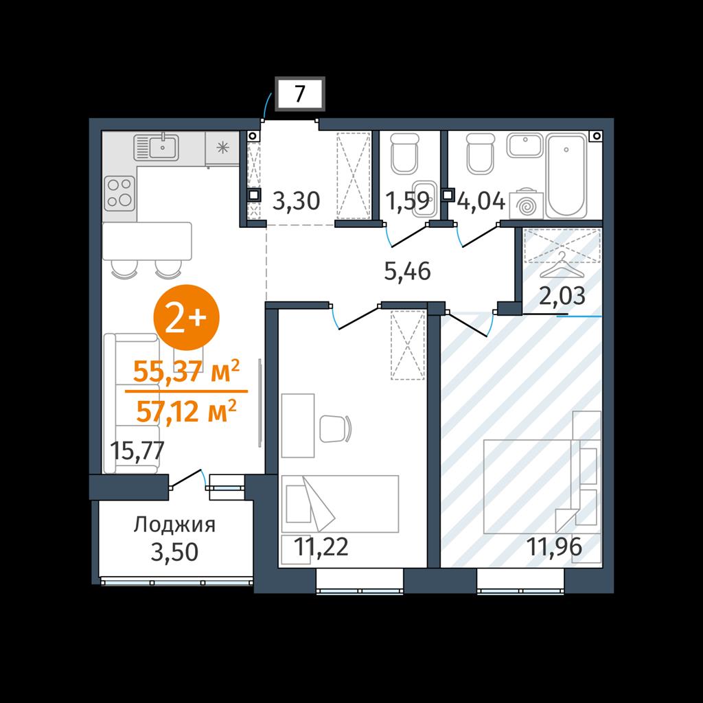 Двухкомнатная квартира 55,37 м2 по ул. Сергея Джанбровского 25 за 7129000 руб. |
