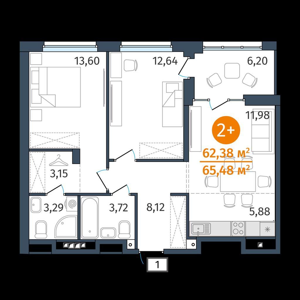 общая 62,38 м2, жилая 0 м2, кухни 5,88 м2 |