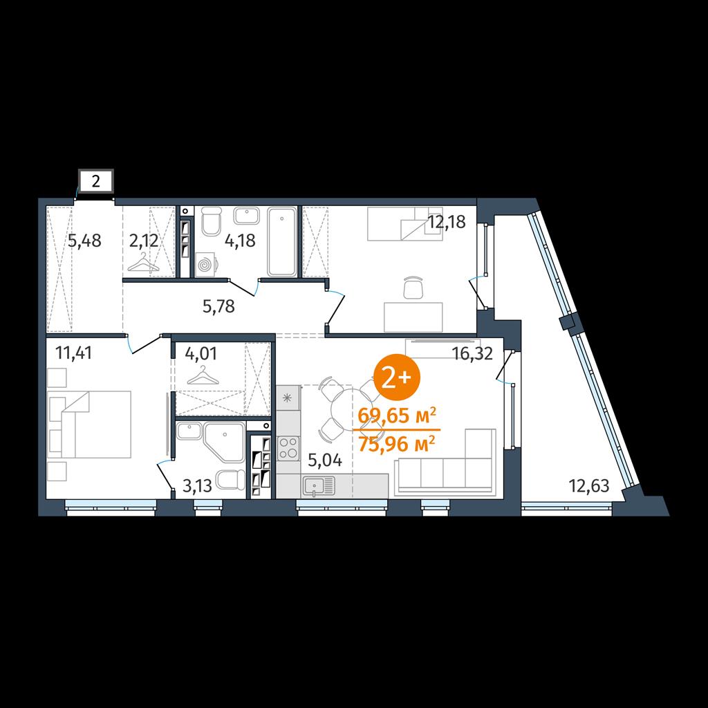 общая 69,65 м2, жилая 0 м2, кухни 5,04 м2 |
