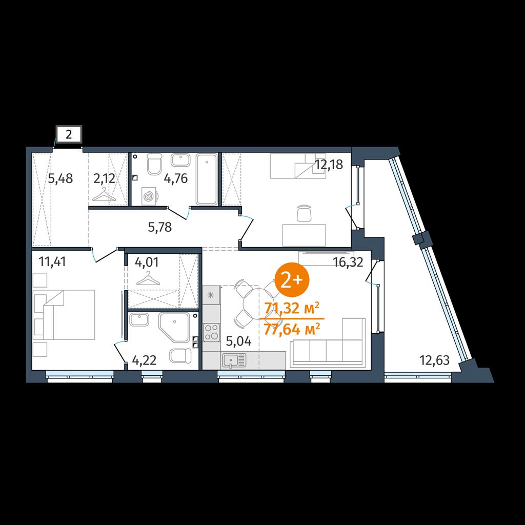 общая 71,32 м2, жилая 0 м2, кухни 5,04 м2 |
