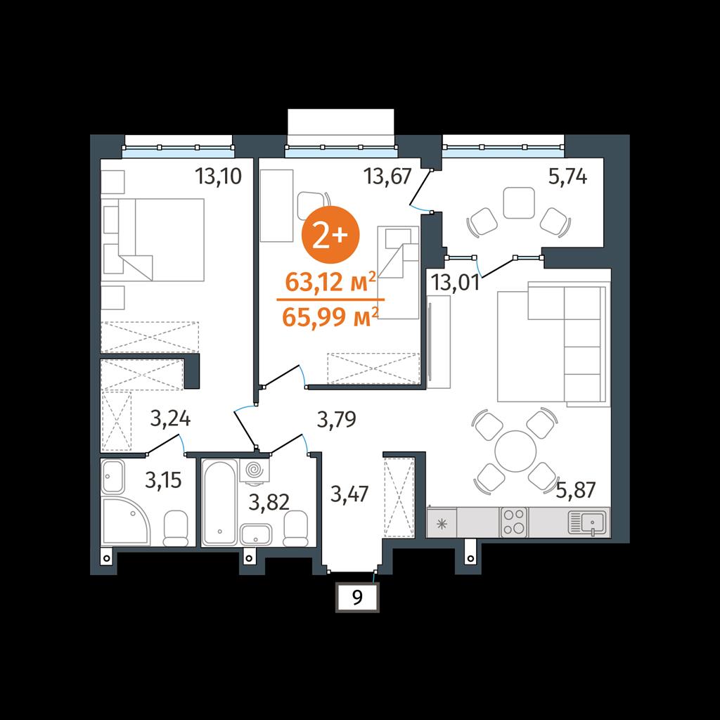 общая 63,12 м2, жилая 0 м2, кухни 5,87 м2 |
